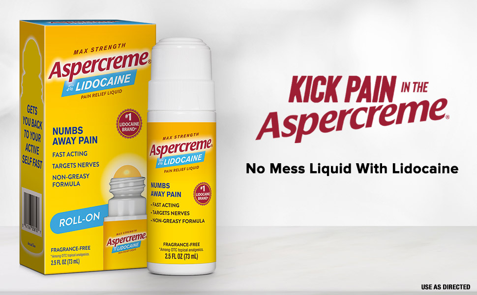 Chất lỏng giảm đau dạng cuộn Aspercreme Lidocaine được thiết kế để làm dịu các dây thần kinh bị trầm trọng. Công thức lidocaine không kê đơn có cường độ tối đa làm giảm tín hiệu đau để giảm đau.