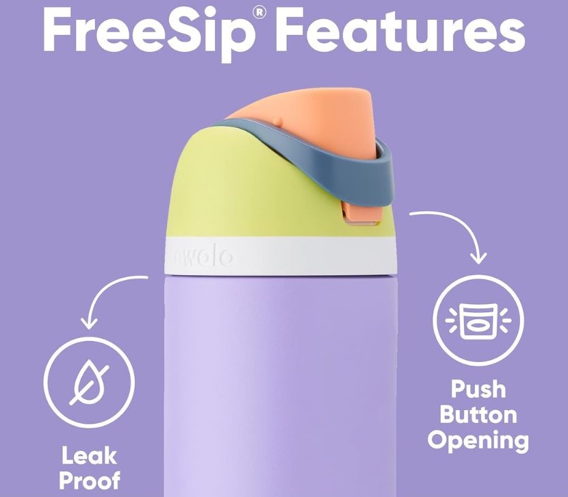 Vòi FreeSip - Điều gì làm cho Owala FreeSip trở nên khác biệt so với các loại bình khác? FreeSip có vòi 2 trong 1 đã được cấp bằng sáng chế, vừa là ống hút tích hợp để nhấm nháp và miệng rộng để uống.