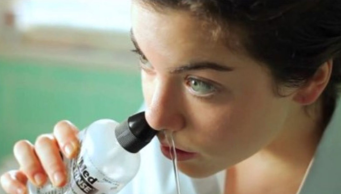 - Xì mũi thật nhẹ nhàng, không véo mũi hoàn toàn để tránh gây áp lực lên màng nhĩ, nếu có thể chịu đựng được, hãy ngửi nhẹ nhàng bất kỳ dung dịch còn sót lại nào còn sót lại trong đường mũi một hoặc hai lần, vì điều này có thể làm sạch vùng mũi họng sau, tức là khu vực phía sau đường mũi của bạn.