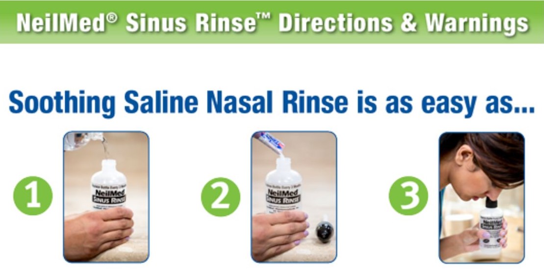 - Luôn rửa sạch đường mũi của bạn chỉ bằng gói NeilMed Sinus Rinse, các gói của NeilMed chứa hỗn hợp natri clorua và natri bicarbonate loại USP - những thành phần này có chất lượng tinh khiết nhất hiện có để tạo ra hỗn hợp bột khô. Rửa mũi chỉ bằng nước thường mà không có hỗn hợp của NeilMed sẽ gây ra cảm giác nóng rát nghiêm trọng vì nước thường không có tác dụng sinh lý cho niêm mạc mũi của bạn, ngay cả khi nó thích hợp để uống.