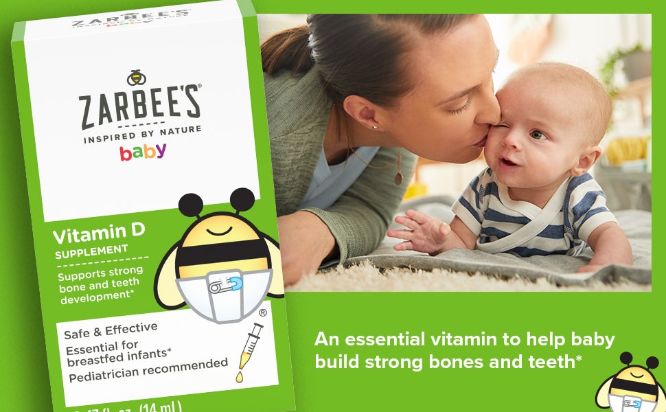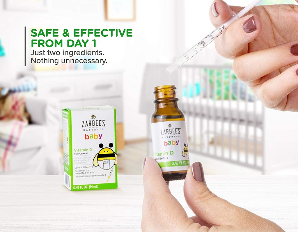 Zarbee's Vitamin D Drops for Infants 400IU (10mcg) - Bổ sung Viatmin D dành cho trẻ sơ sinh dạng nhỏ giọt giúp trẻ sơ sinh & trẻ mới biết đi hấp thụ canxi để phát triển xương & răng chắc khỏe. An toàn & hiệu quả hàng ngày cho trẻ sơ sinh từ 0 tháng tuổi trở lên. Được Bác sĩ nhi khoa khuyên dùng.(A)*