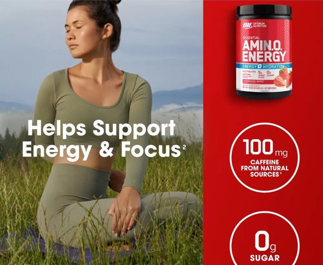 Optimum Nutrition Essential Amino Energy + Electrolytes, Strawberry Burst - Tận dụng tối đa thời gian trong ngày của bạn thật dễ dàng với Amino năng lượng - một thức uống có hương vị dâu tây tuyệt vời kết hợp với caffeine từ các nguồn tự nhiên cộng với chất điện giải để hydrat hóa. Bạn chỉ cần trộn hai muỗng với 10 đến 12 ounce nước để nạp lại, bù nước và làm mới bất cứ lúc nào bạn cần.
