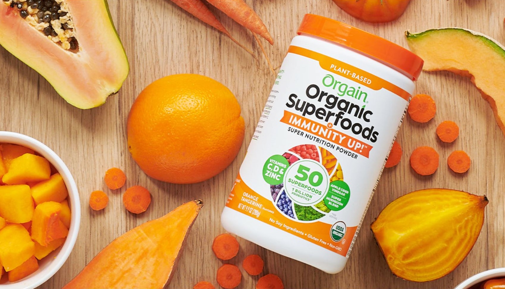 Bạn muốn tăng cường khả năng miễn dịch nhờ lợi ích của siêu thực phẩm? Thêm bột Orgain Immunity Up vào ngày của bạn để được hỗ trợ miễn dịch thêm! Có sẵn màu cam quýt và táo mật ong.