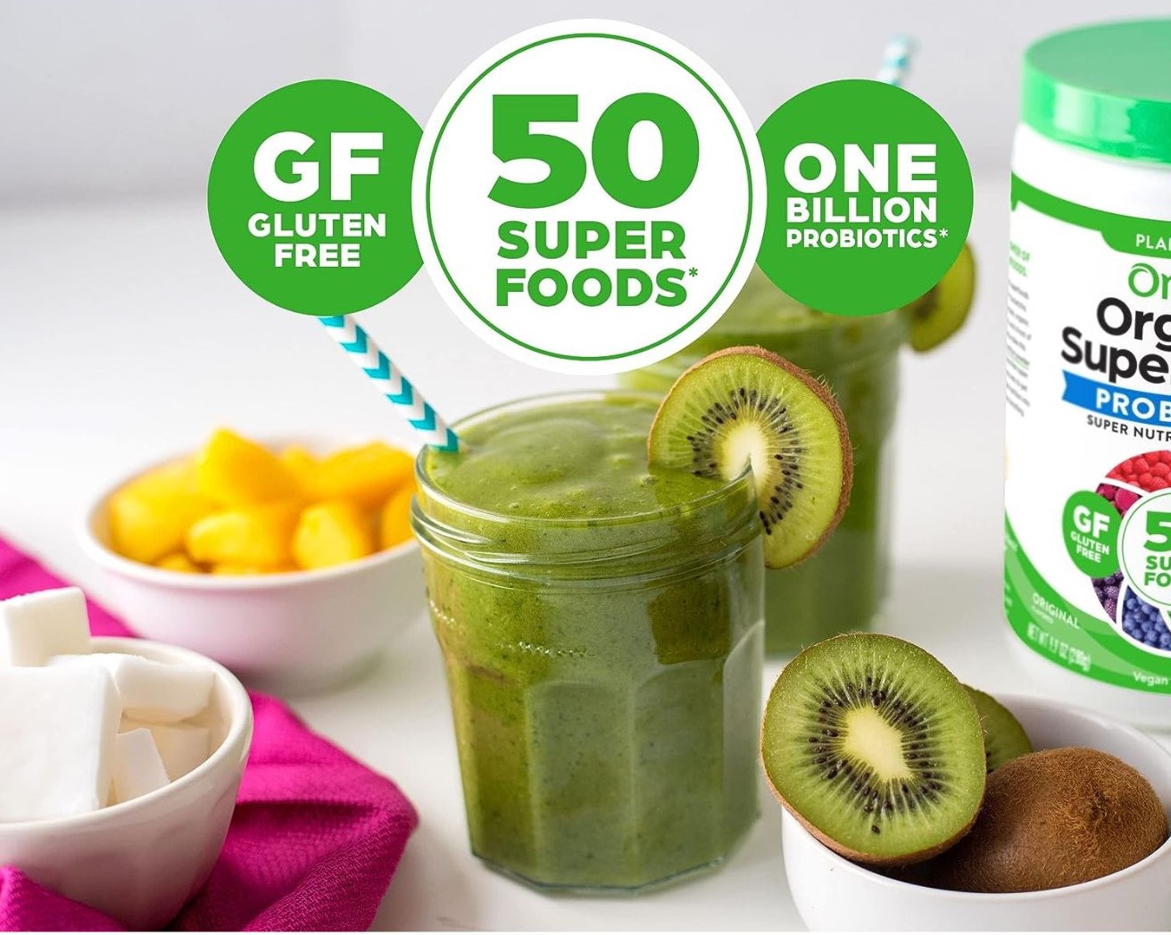 Dinh dưỡng tăng cường: nâng cao dinh dưỡng của bạn bằng bột siêu thực phẩm Orgain. Mỗi khẩu phần chứa 50 siêu thực phẩm thuần chay hữu cơ cộng với hơn 1 tỷ men vi sinh để hỗ trợ sức khỏe tiêu hóa và sức khỏe tổng thể của bạn!