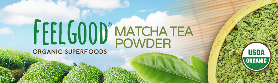 Feel Good Organic Superfoods Matcha Tea Powder - Bột trà xanh matcha được biết với nhiều công dụng cải thiện sức khỏe được biết đến như chống oxi hóa cực mạnh, ngăn ngừa ung thư, tăng cường trí nhớ, củng cố hệ miễn dịch và cải thiện lượng cholesterol trong máu.