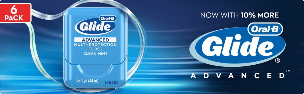 Oral-B Glide Advanced Multi-Protection Floss - chỉ nha khoa giúp bảo vệ chống lại mảng bám, viêm nướu & sâu răng. Công nghệ kháng khuẩn tiêu diệt vi trùng gây hôi trong hơi thở, khả năng trượt dễ dàng hơn tới 50% trong không gian chật hẹp.(C)