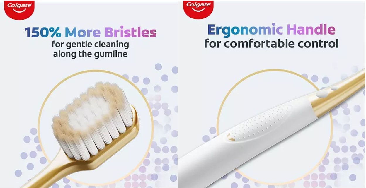 Colgate Total Plaque Removal Manual Toothbrush, Ultra Soft - Bàn chải đánh răng Total Plaque Ultra Soft được chế tạo với nhiều lông hơn 150% đảm bảo tạo bọt tốt hơn và mang lại trải nghiệm làm sạch nhẹ nhàng dọc theo đường viền nướu. Bàn chải có đầu rộng hơn, giúp tiếp cận thoải mái đến mọi ngóc ngách trong miệng. Tay cầm tiện dụng vừa vặn trong tay bạn, nâng cao trải nghiệm đánh răng của bạn.