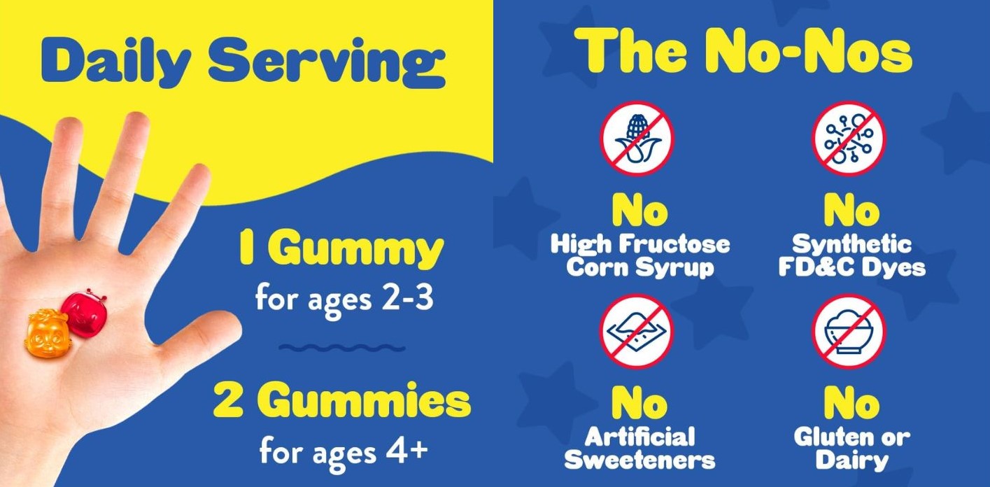 Nhiệm vụ liên tục là hỗ trợ trẻ ăn đủ lượng trái cây và rau quả. Đây là lúc mà một loại vitamin tổng hợp có thể hỗ trợ. Trong khi chế độ ăn uống đa dạng và cân bằng được khuyến khích, vitamin tổng hợp có thể giúp đảm bảo trẻ đạt được dinh dưỡng thích hợp mà cơ thể chúng cần. Vitamin tổng hợp có thể tạo nên những gì chúng không nhận được qua thức ăn.