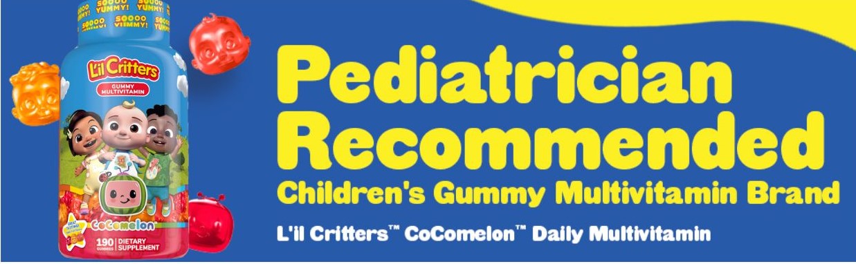L’il Critters CoComelon Daily Gummy Multivitamin for Kids - Viên kẻo dẻo vitamin tổng hợp dành cho trẻ em, hương Cherry, Orange và Watermelon thơm ngon với hình dạng CoComelon vui nhộn, cung cấp 11 chất dinh dưỡng thiết yếu giúp hỗ trợ sự tăng trưởng và phát triển khỏe mạnh, bao gồm Vitamin A, B-6, B-12, C, D và E. Tuyệt vời nhất là L'il Critters CoComelon Multivitamins cung cấp cho trẻ các chất dinh dưỡng quan trọng mà không cần thêm bất kỳ chất nào khác.