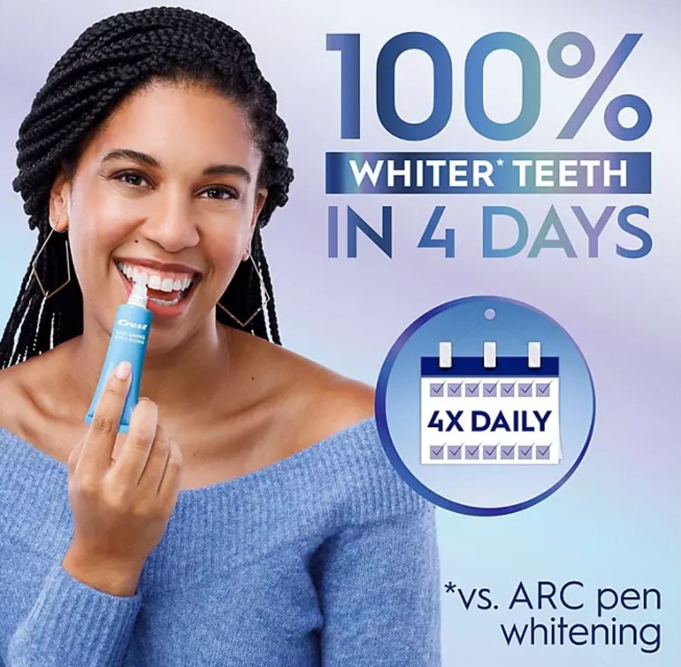 Crest 3dwhite daily whitening serum + Led Light Treatment - Serum làm trắng răng hàng ngày Crest 3DWhite Advanced Enamel White, kết hợp với công nghệ HydroShield tạo ra lớp màng dưỡng ẩm an toàn cho men răng, giúp làm trắng răng nhẹ nhàng với độ nhạy gần như bằng không. Daily Whitening Serum dễ dàng thoa lên và làm trắng các vết ố sâu bên trong bề mặt răng mà kem đánh răng không thể chạm tới. Với đèn Led hoạt động để nhanh chóng phá vỡ các vết bẩn và tăng cường kết quả làm trắng răng của bạn tăng cường kết quả làm trắng cho những dịp đặc biệt như đêm hẹn hò, đám cưới, hay một bữa tiệc vui vẻ bên ngoài. Serum làm trắng răng hàng ngày Crest 3DWhite có sức mạnh làm trắng gấp 15 lần kem đánh răng và an toàn cho men răng khi sử dụng hàng ngày, không cần súc miệng hoặc đánh răng.(S)