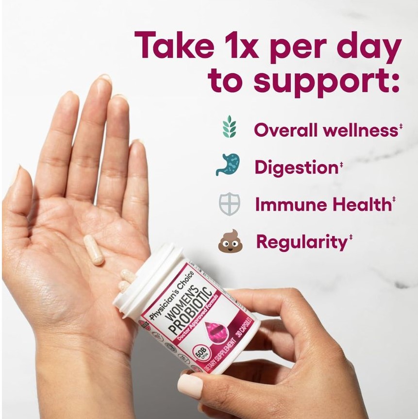 Prebiotics & Probiotics for Women -Thực phẩm bổ sung men vi sinh dành cho phụ nữ, cung cấp các vi sinh vật có lợi giúp cải thiện sức khỏe đường ruột, giảm đầy hơi, táo bón, sức khỏe men vi sinh âm đạo. Với 50 tỷ cfu viên men vi sinh được kết cấu bằng viên nang thuần chay giải phóng chậm bao tan trong ruột. Là thực phẩm tuyệt vời nhất cho sưc sức khỏe phụ nữ.(A)