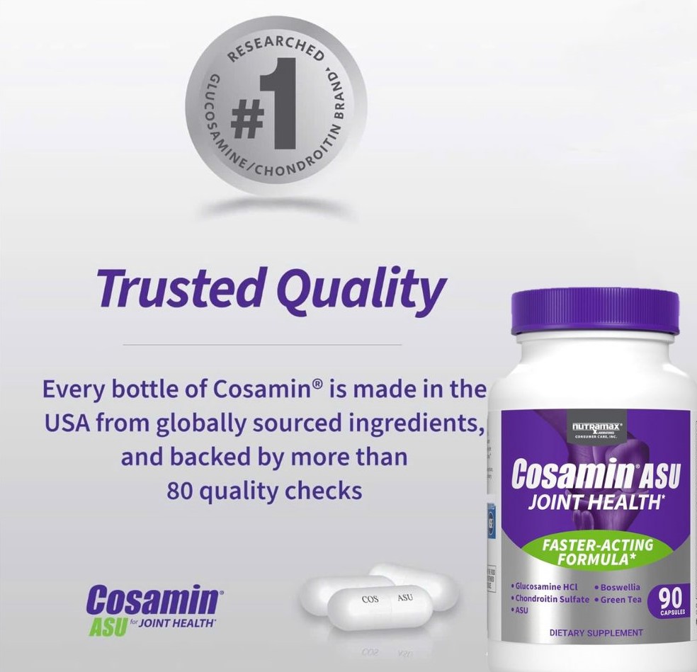 Cosamin ASU được sản xuất với thành phần khoa học tốt nhất và chất lượng cao. Được phát triển bởi một dược sĩ, Cosamin® được sản xuất với sự quan tâm và toàn vẹn nhất và được hỗ trợ bởi hơn 80 kiểm tra chất lượng để đảm bảo rằng bạn đang mua một chất bổ sung sức khỏe khớp chất lượng cao, chất lượng cao. Ngoài ra, Cosamin ASU đã được kiểm tra nghiêm ngặt bởi các cơ sở thử nghiệm độc lập để đáp ứng các tiêu chuẩn cao của chúng tôi và của bạn.