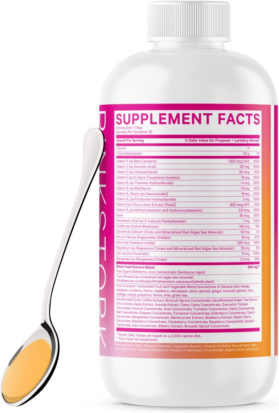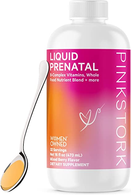 Pink Stork Liquid Prenatal Vitamins For Women - Vitamin tổng hợp dạng lỏng dành cho phụ nữ trước khi sinh không biến đổi gen này có phức hợp từ 14 loại vitamin và khoáng chất để hỗ trợ nhu cầu chất dinh dưỡng, hấp thụ sắt, hỗ trợ miễn dịch và sức khỏe tế bào, sức khỏe tổng thể của bạn và con bạn trước khi sinh. Đồng thời giúp hỗ trợ sự phát triển khỏe mạnh của thai nhi.(A)*