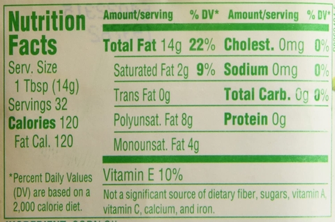 Mazola 100% Pure Corn Oil - Dầu bắp (ngô) là thực phẩm không chứa cholesterol với 14g tổng chất béo trong mỗi khẩu phần. Là nguyên liệu nấu ăn phổ biến trong gia đình vì chứa nhiều thành phần dưỡng chất rất có lợi đối với sức khỏe.(A)*