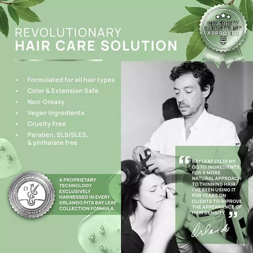 Đây là sản phẩm lý tưởng cho phương pháp tiếp cận tự nhiên hơn đối với tóc mỏng, giúp bạn trông và cảm thấy tốt nhất. Như chính Orlando Pita đã nói: “Dầu lá nguyệt quế là thành phần lý tưởng của tôi cho phương pháp tiếp cận tự nhiên hơn đối với tóc mỏng. Tôi đã sử dụng nó trong nhiều năm cho khách hàng để cải thiện vẻ ngoài của mật độ tóc”.