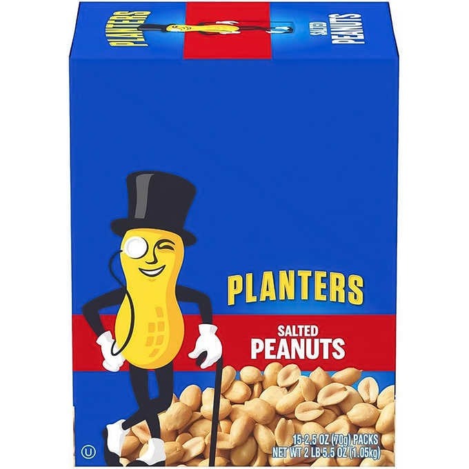 Planters Peanuts - Salted - Đậu phộng rang muối được nêm bằng muối biển tinh khiết và là nguồn cung cấp chất xơ, và vitamin E. - Có dạng túi nhỏ dễ mở, kích thước snack nên bạn có thể thưởng thức món mặn này ở bất cứ đâu.(A)