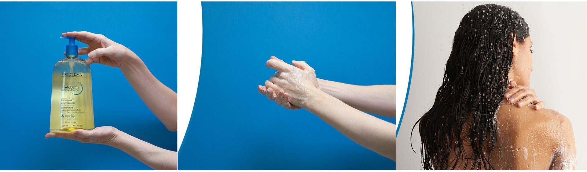 Một hoặc hai lần một ngày - 7 ngày một tuần, dùng để tắm vòi hoa sen hoặc bồn tắm, thoa lên da ướt và sau đó rửa sạch. Để có kết quả tốt hơn nữa, hãy sử dụng sản phẩm chăm sóc da Atoderm sau đó. Sản phẩm dành cho khuôn mặt và cơ thể ở cả người lớn, trẻ em và em bé.