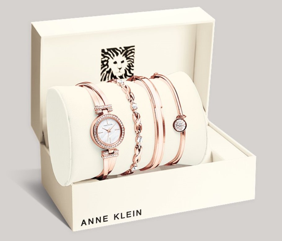 Bộ quà tặng Anne Klein là một cách đầy phong cách để nói rằng tôi yêu bạn. Cho dù đó là ngày của Mẹ, Giáng sinh hay sinh nhật, bộ quà tặng Anne Klein đều mang đến vẻ ngoài hoàn chỉnh, sang trọng và quý giá. Mỗi bộ bao gồm một chiếc đồng hồ Anne Klein và phối hợp các vòng tay hoặc các phụ kiện khác để tạo nên vẻ ngoài tinh tế từ đầu đến chân.