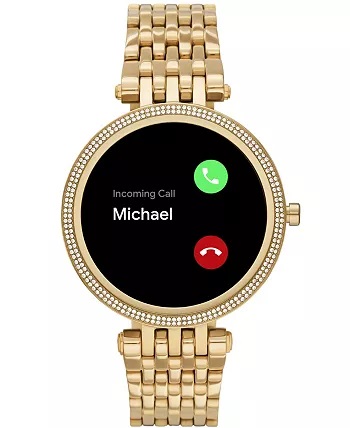 Michael Kors Access Gen 5E Darci Gold-Tone Stainless Steel Smartwatch 43mm - Đồng hồ thông minh 43mm thế hệ 5E Darci của Michael Kors kết hợp công nghệ Wear OS by Google mới nhất với thiết kế quyến rũ, nổi bật với dây đeo có tông màu vàng và dây đeo bằng thép không gỉ bảy liên kết phù hợp. Các tính năng được hỗ trợ có thể khác nhau giữa các nền tảng và quốc gia.