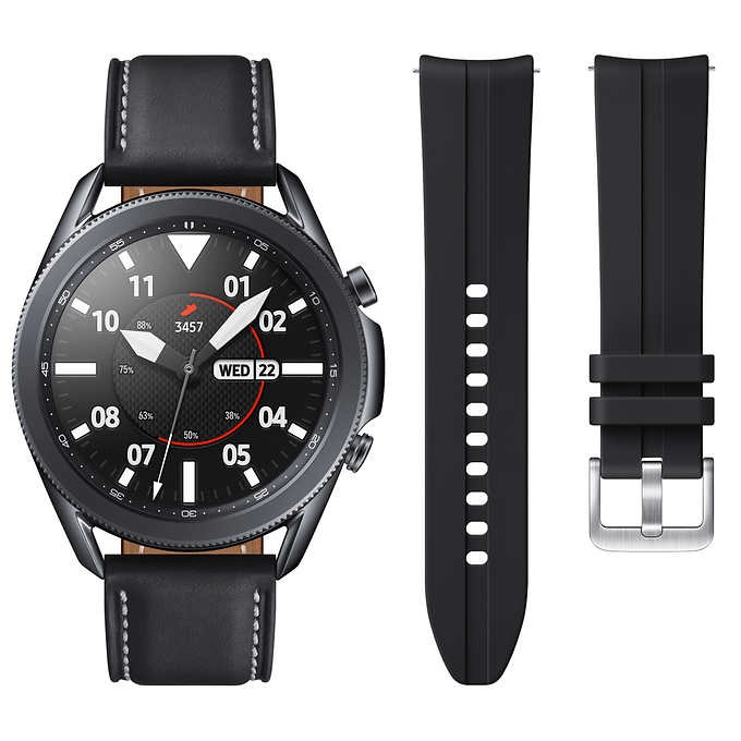 Samsung Galaxy Watch3 45mm Smartwatch - Mystic Black - đồng hồ thông minh theo dõi sức khỏe toàn diện nâng cao, ứng dụng thoại và thanh toán theo lệnh của bạn, dùng trong ngày với một lần sạc, tương thích với Android và iOS. Đặc biệt, tặng kèm dây đeo đồng hồ.