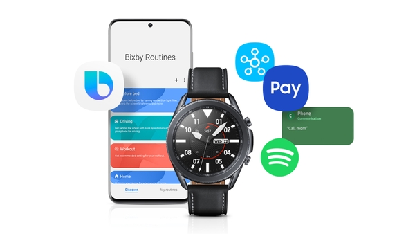 Với Galaxy Watch3, bạn nắm quyền chỉ huy. Nhờ chức năng thoại tích hợp, hãy yêu cầu Bixby đọc văn bản của bạn, gọi điện hoặc bắt đầu huấn luyện chạy trong khi bạn tiếp tục di chuyển. Bạn cũng có thể điều khiển các thiết bị được kết nối với SmartThings, như bộ điều nhiệt, đèn hoặc camera an ninh, ngay từ đồng hồ thông minh của mình — cho dù bạn ở nhà hay đi vắng. Samsung Pay cũng có trên cổ tay của bạn, vì vậy bạn có thể để ví ở nhà, biết rằng tất cả dữ liệu của bạn được bảo vệ bởi một nền tảng bảo mật cấp quốc phòng nhiều lớp.