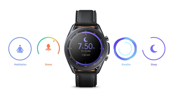 Một đêm ngon giấc không bao giờ lỗi thời. Trình theo dõi giấc ngủ tự động của Galaxy Watch3 — không cần tải xuống ứng dụng — sử dụng một thuật toán nâng cao để tính điểm giấc ngủ của bạn. Đồng hồ của bạn cũng theo dõi mức độ căng thẳng của bạn và cung cấp hướng dẫn thở để giúp bạn gần đây hơn.