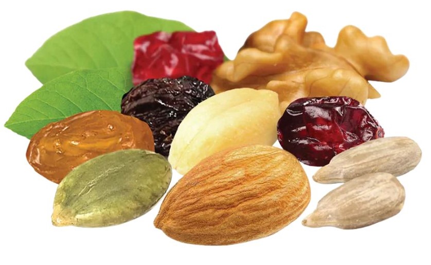 Mỗi gói chứa các loại hạt, trái cây và hạt hỗn hợp, chẳng hạn như hạnh nhân, quả óc chó, quả hồ trăn, quả hồ đào, hạt bí ngô và quả nam việt quất. Quả nam việt quất có tác dụng mạnh mẽ chống lại bệnh tật nhờ lợi ích chống oxy hóa, đồng thời cung cấp lượng vị ngọt vừa phải. Các loại hạt mang lại cảm giác giòn, có tác dụng giúp duy trì một trái tim khỏe mạnh nhờ lượng axit béo omega-3 dồi dào.