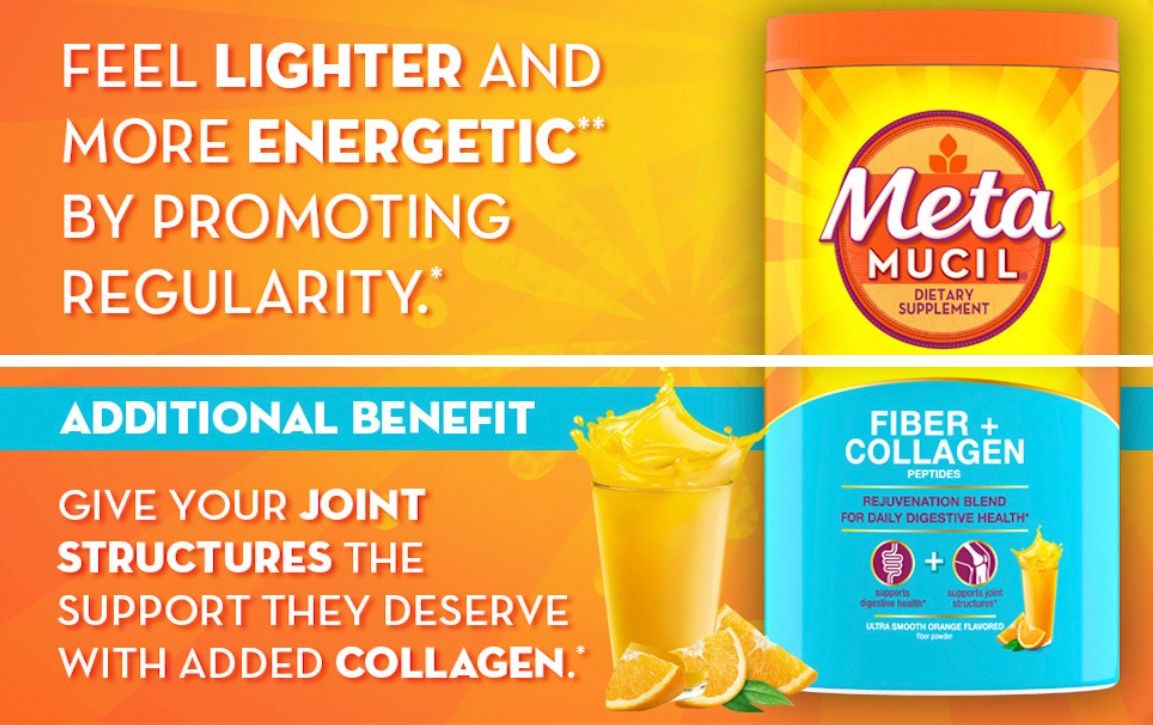 Metamucil Fiber + Collagen Psyllium Husk Fiber Supplement - Hỗn hợp Metamucil Fiber + Collagen cung cấp bổ sung chất xơ và các peptide collagen cao cấp để tạo ra một thức uống cực kỳ mịn và thơm ngon mà bạn có thể thêm vào thói quen chăm sóc sức khỏe hàng ngày của mình. Hỗn hợp trẻ hóa Fiber + Collagen này là một cách tuyệt vời để hỗ trợ sức khỏe tiêu hóa và cấu trúc khớp của bạn.(A)