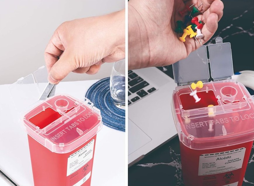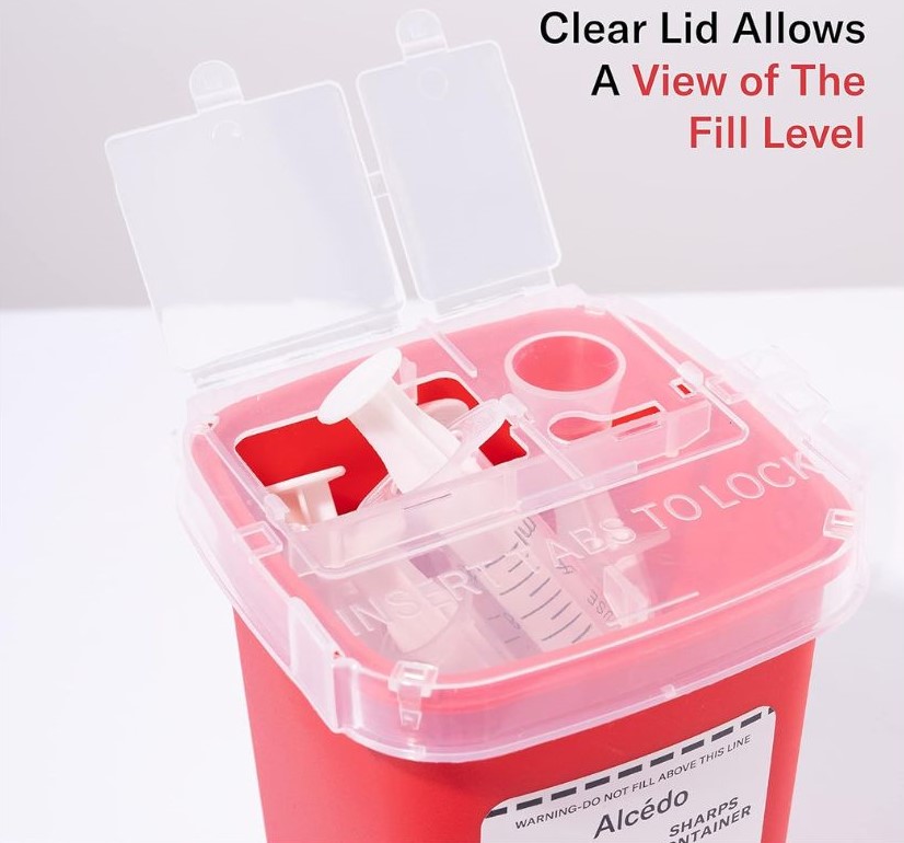 Alcedo Sharps Container for Home Use - Hộp đựng vật sắc nhọn dùng cho gia đình và lý tưởng để sử dụng trong các phòng thí nghiệm, phòng khám để xử lý chất thải kim tiêm, ống tiêm nguy hiểm. Sản phẩm được thiết kế gọn nhẹ, tiện lợi, dễ sử dụng, cho dù bạn ở nhà, nơi làm việc, hoặc bất cứ nơi nào bạn đi!(A)