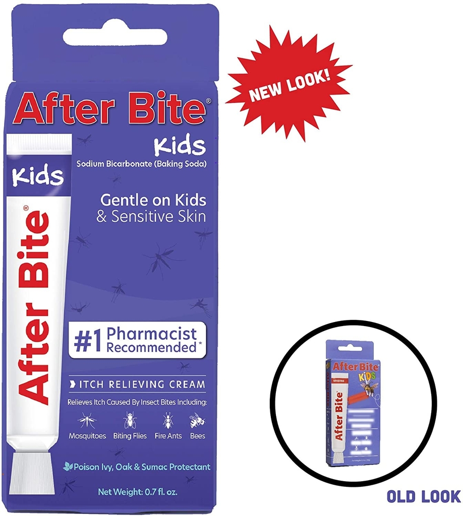 After Bite Itch Relieving Cream là một loại kem dịu nhẹ, không gây châm chích, giúp giảm đau, ngứa và sưng tấy ngay lập tức do côn trùng đốt và đốt. AfterBite Kids chứa baking soda, lô hội và dầu cây trà giúp làm dịu và dưỡng ẩm cho da. After Bite Itch Relieving Cream For Kids bảo vệ tạm thời và giúp giảm ngứa và kích ứng da nhẹ do côn trùng cắn, cây thường xuân độc, cây sồi hoặc cây thù du. Kem After Bite làm giảm mẫn, ngứa do vết côn trùng đốt như: muỗi, kiến,…