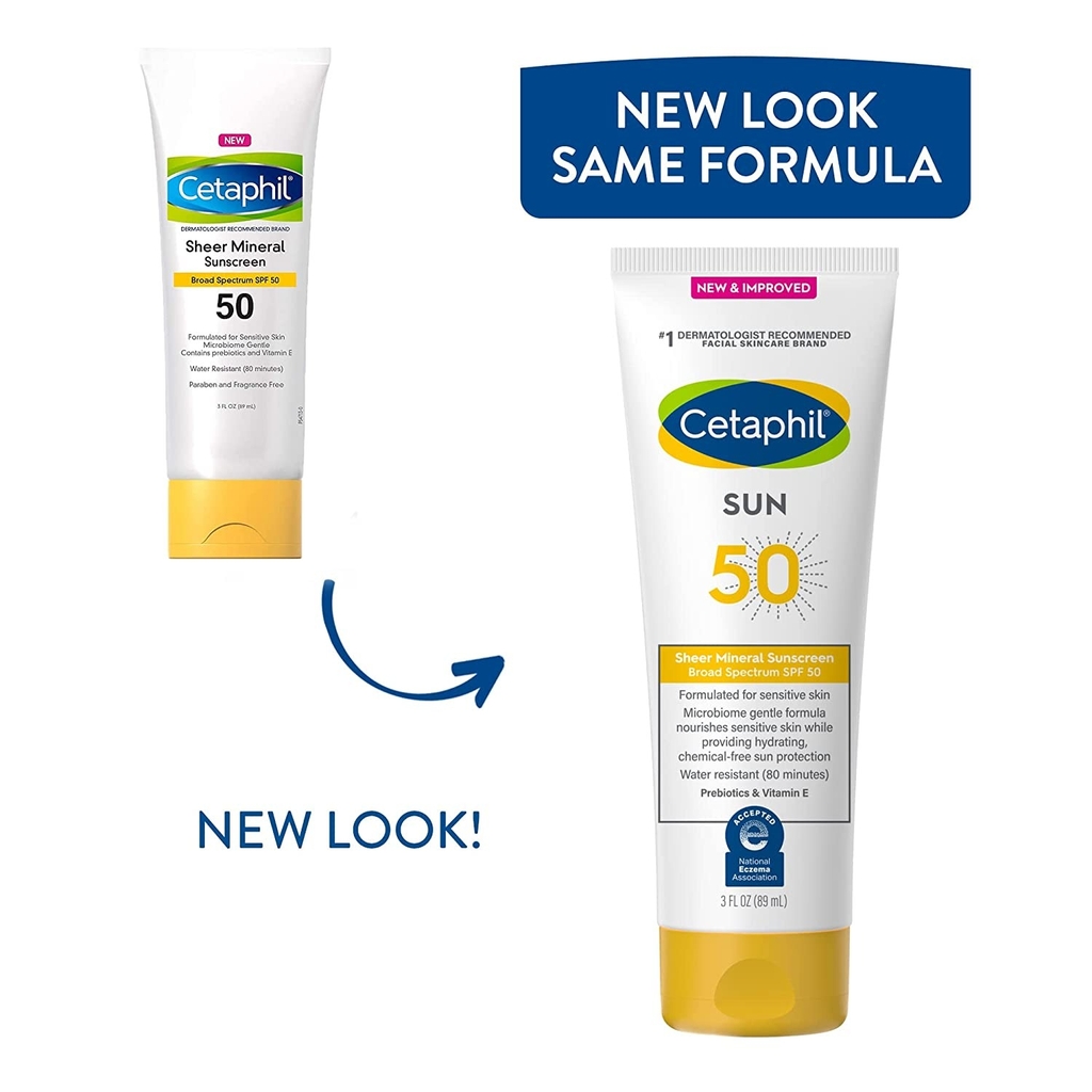 1. CETAPHIL SHEER MINERAL SUNSCREEN SPF 50: Nuôi dưỡng làn da nhạy cảm đồng thời cung cấp khả năng dưỡng ẩm, chống nắng không chứa hóa chất