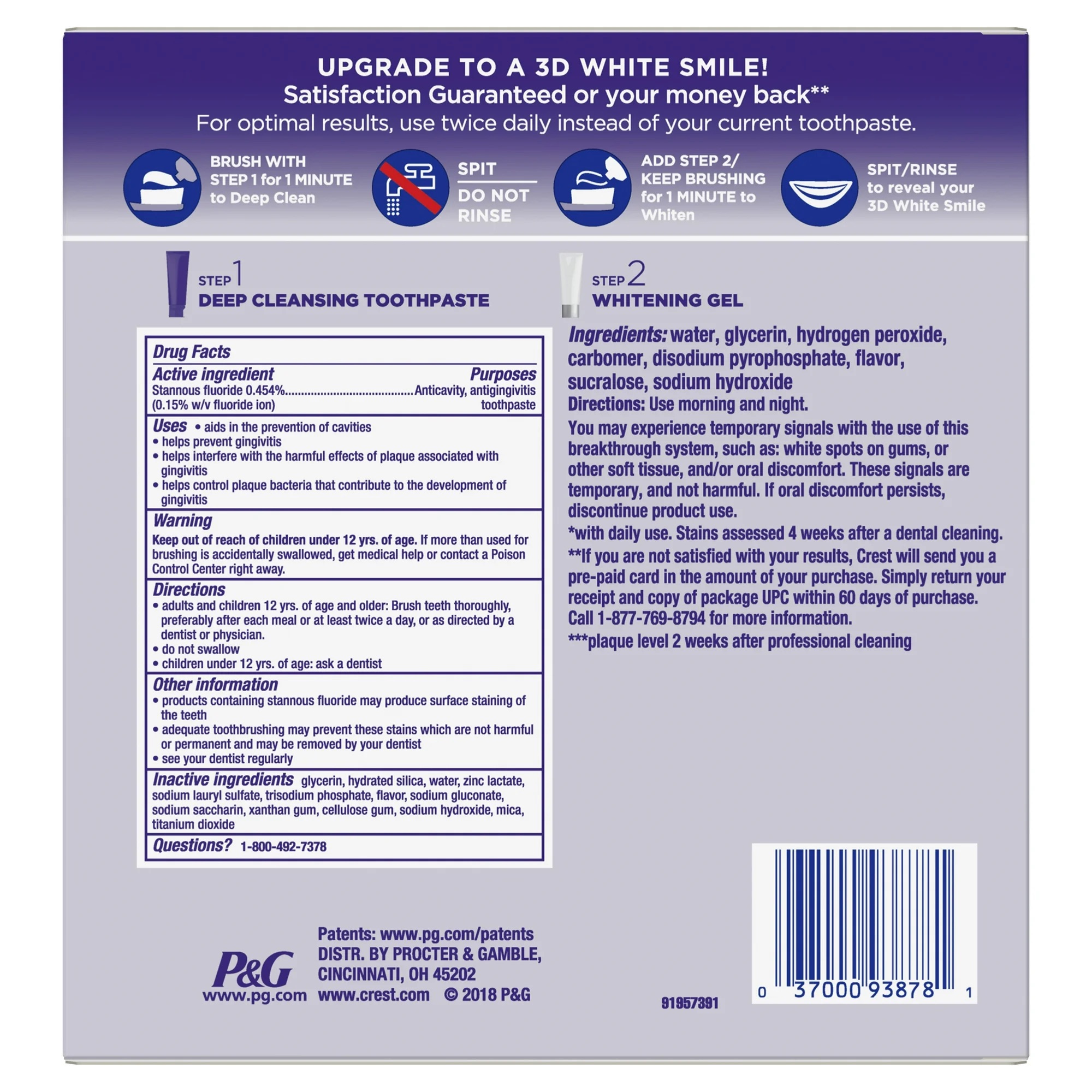 Crest 3D White Brilliance + Whitening Two-Step Toothpaste - Nâng cấp Quy trình Chăm sóc Răng miệng của bạn. Cảm nhận sự khác biệt của hệ thống 2 bước mà bạn có thể sử dụng hàng ngày. 2 phút, hai lần mỗi ngày cho Nụ cười Trắng hơn. Trải nghiệm kết quả làm trắng tuyệt vời với kem đánh răng làm sạch hàng ngày Crest 3D White Brilliance và hệ thống gel làm trắng. Hệ thống hai bước bao gồm kem đánh răng làm sạch sâu và chất làm trắng hoàn thiện. Bước 1 làm sạch kỹ lưỡng và Bước 2 đánh bóng và làm trắng để giữ cho nụ cười của bạn trắng sáng đến 99% như đánh bóng chuyên nghiệp*. Bạn có thể cảm nhận sự khác biệt chỉ sau một lần sử dụng. *khi sử dụng hàng ngày. Đánh giá vết ố 4 tuần sau khi vệ sinh răng miệng.