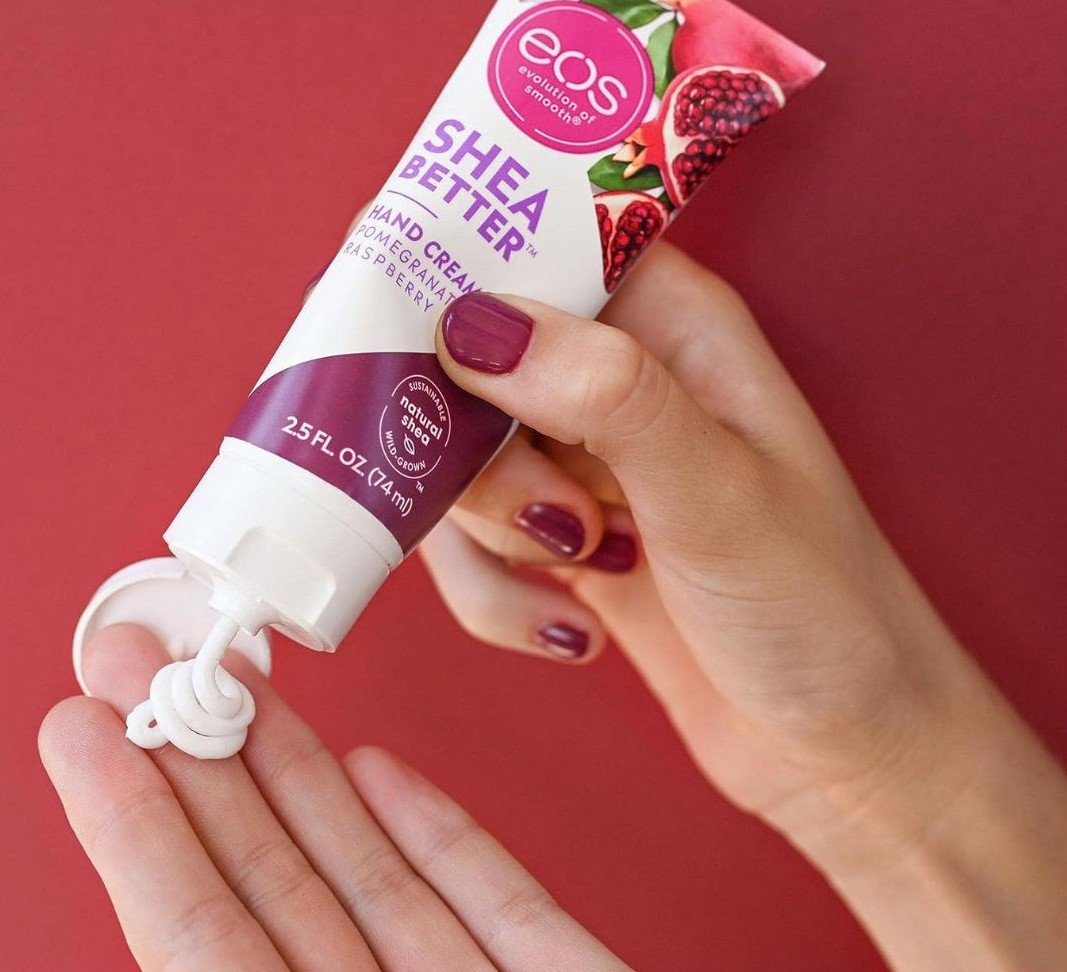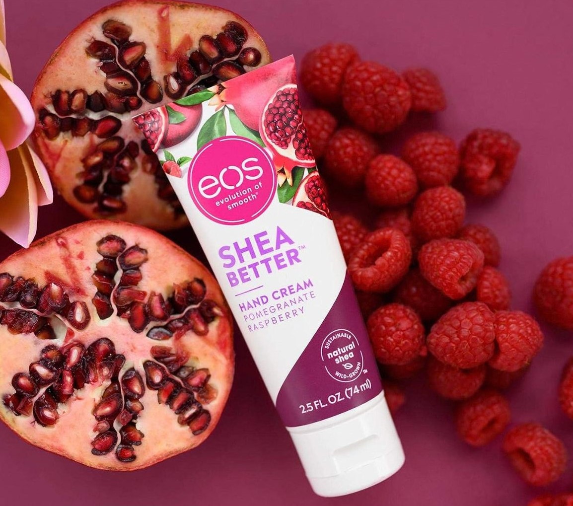 Kem dưỡng da tay Shea Better: Kem dưỡng da Eos mâm xôi lựu tươi sáng và mọng nước, với hương thơm của quả lựu ngọt, quả mâm xôi chua và hoa sen nhiều nước