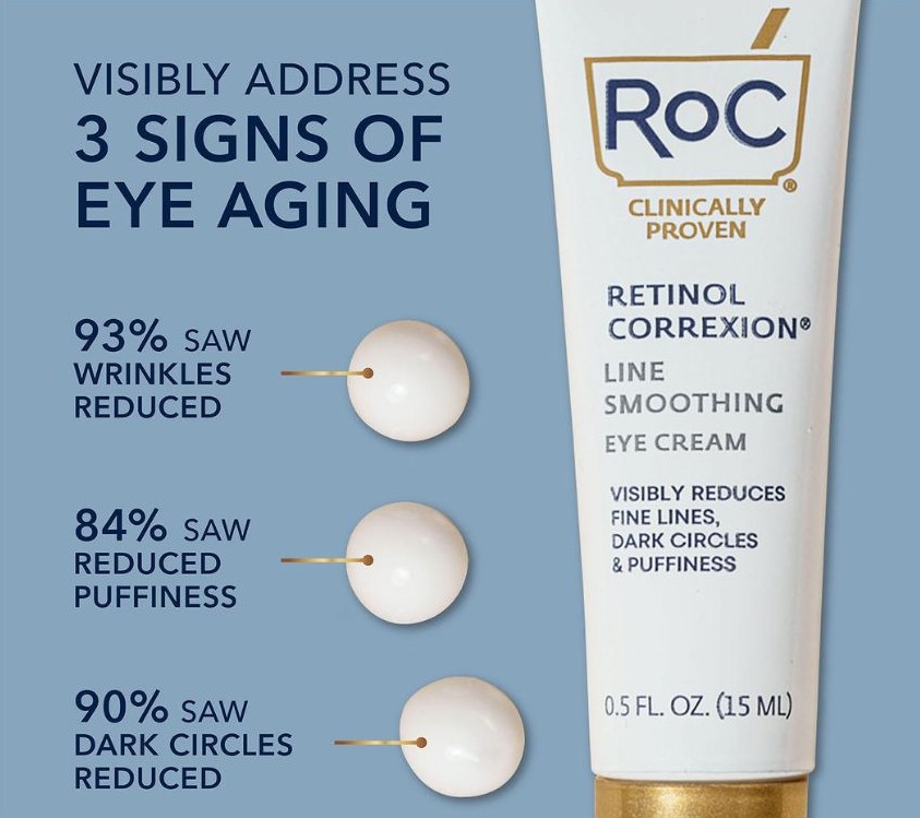 RoC Retinol Correxion Line Smoothing Eye Cream - Bạn hoàn toàn có thể giải quyết 3 mối lo ngại chính về vùng mắt: đường nhăn, quầng thâm và bọng mắt với kem dưỡng mắt RoC hiệu quả. Kem dưỡng mắt RoC này được làm bằng retinol giải phóng chậm và chất tăng cường retinol, công thức này mang lại kết quả tối đa mà không gây kích ứng. Công thức đặc biệt dành cho vùng mắt mỏng manh, sản phẩm hấp thụ nhanh được chứng minh lâm sàng giúp trẻ hóa đôi mắt của bạn.