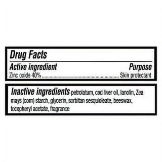 Thành phần không hoạt động: Petrolatum, dầu gan cá tuyết, Lanolin, tinh bột ngô Zea Mays (Bắp), Glycerin, Sorbitan sesquioleate, Sáp ong, Tocopheryl Acetate, Hương liệu.