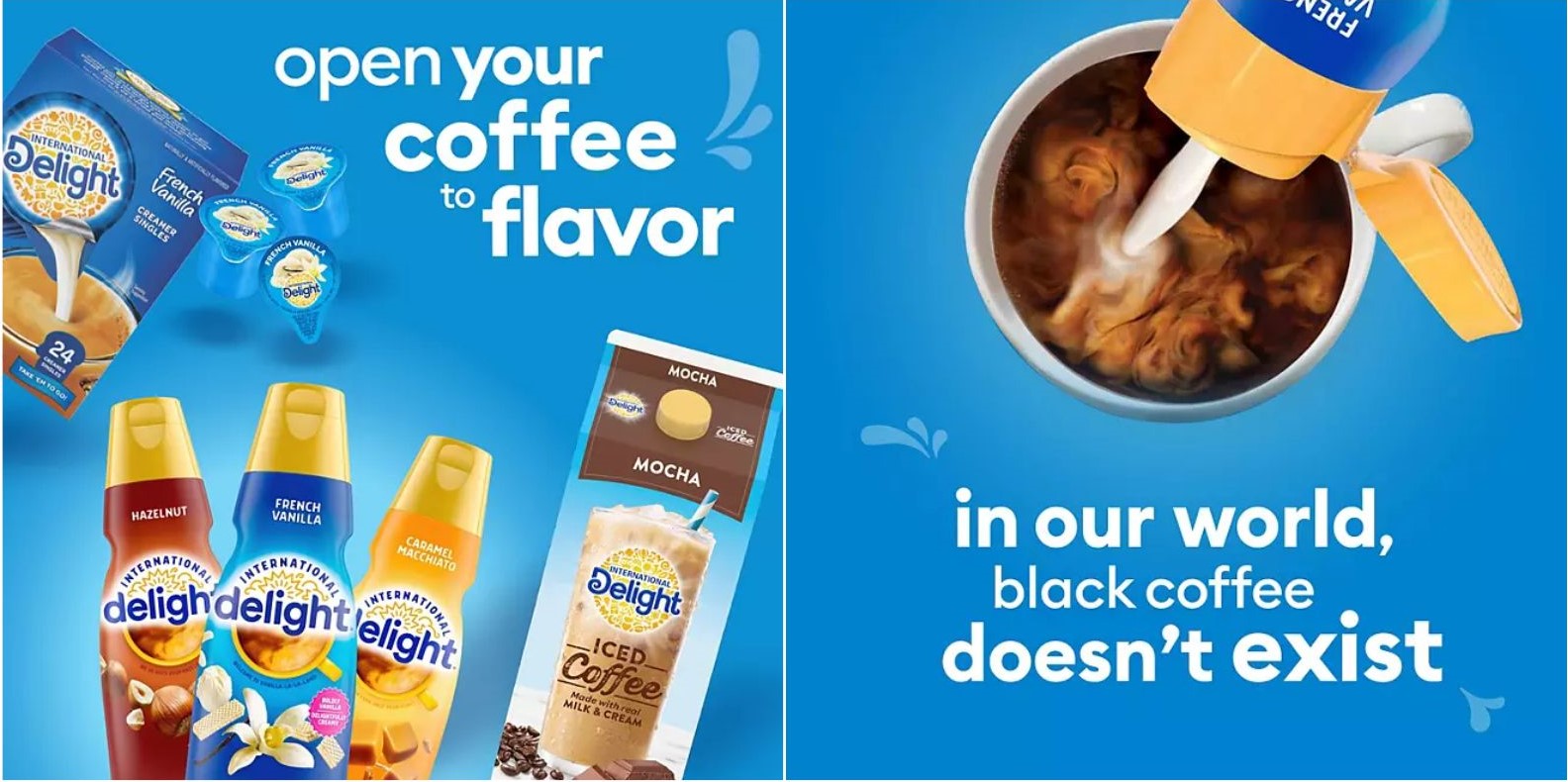 Trong hơn ba mươi năm, International Delight đã làm cho mỗi tách cà phê trở nên thơm ngon hơn. Máy làm kem cà phê của International Delight có hơn 20 hương vị khác nhau, bao gồm các loại không béo và không đường, đồng thời International Delight hiện cũng cung cấp nhiều lựa chọn cà phê đá. International Delight tin rằng có một nghệ thuật để pha chế một tách cà phê hoàn hảo và họ muốn mỗi ngụm cà phê bạn uống là một kiệt tác của hương vị.