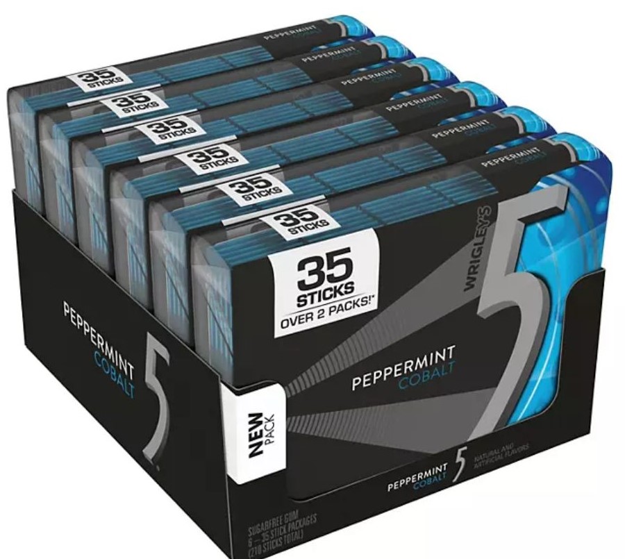 Kẹo cao su Wrigley's Cobalt 5 là kẹo cao su hương bạc hà, bao gồm sáu gói kẹo cao su, mỗi gói có 35 thanh kẹo cao su. Có rất nhiều để chia sẻ với bạn bè, mỗi gói nhỏ gọn và dễ mang theo để bạn có thể giữ một gói bên mình cả ngày. Mặt hàng này lý tưởng cho các quầy bán đồ ăn nhẹ, cửa hàng tiện lợi và máy bán hàng tự động.