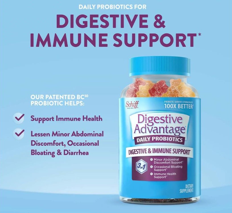 Schiff biết sức khỏe tiêu hóa là chìa khóa cho sức khỏe tổng thể và các vấn đề về tiêu hóa có thể khiến bạn gặp bất lợi. Đó là lý do tại sao trong hơn 15 năm qua, Digestive Advantage đã luôn cống hiến hết mình cho sức khỏe hệ tiêu hóa của bạn, mang đến cho bạn các chủng vi khuẩn sinh học đột phá và được cấp bằng sáng chế giúp hỗ trợ sức khỏe tiêu hóa và miễn dịch của bạn.