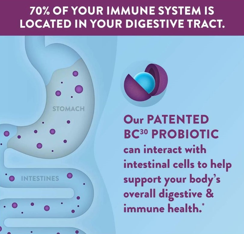Nhiều chế phẩm sinh học gặp khó khăn trong việc tồn tại trong môi trường axit khắc nghiệt trong dạ dày. Probiotic của Digestive Advantage, BC30 được bảo vệ bởi lớp vỏ protein tự nhiên giúp nó tồn tại tốt hơn 100 lần so với men vi sinh có trong sữa chua. Khả năng sống sót này có nghĩa là sẽ có nhiều vi khuẩn tốt hơn đến đường ruột của bạn, nơi vi khuẩn có thể giúp hỗ trợ sức khỏe tiêu hóa và miễn dịch.