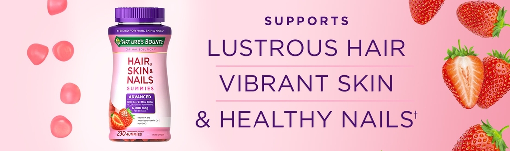 Nature's Bounty Optimal Solutions Advanced Hair, Skin & Nails Gummies cung cấp cho bạn các chất dinh dưỡng quan trọng mà cơ thể cần để hỗ trợ vẻ đẹp tự nhiên từ bên trong. tóc bóng mượt, làn da đầy sức sống và móng tay khỏe mạnh.