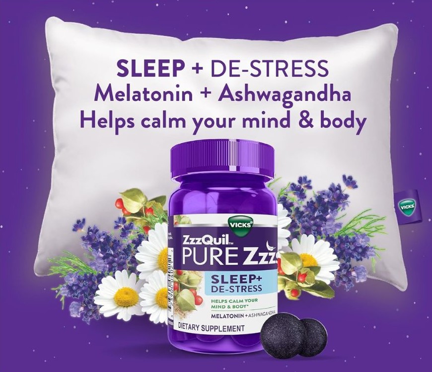 Tên sản phẩm: Vicks ZzzQuil PURE Zzzs De-Stress & Sleep Melatonin + Ashwagandha Sleep Aid Gummies