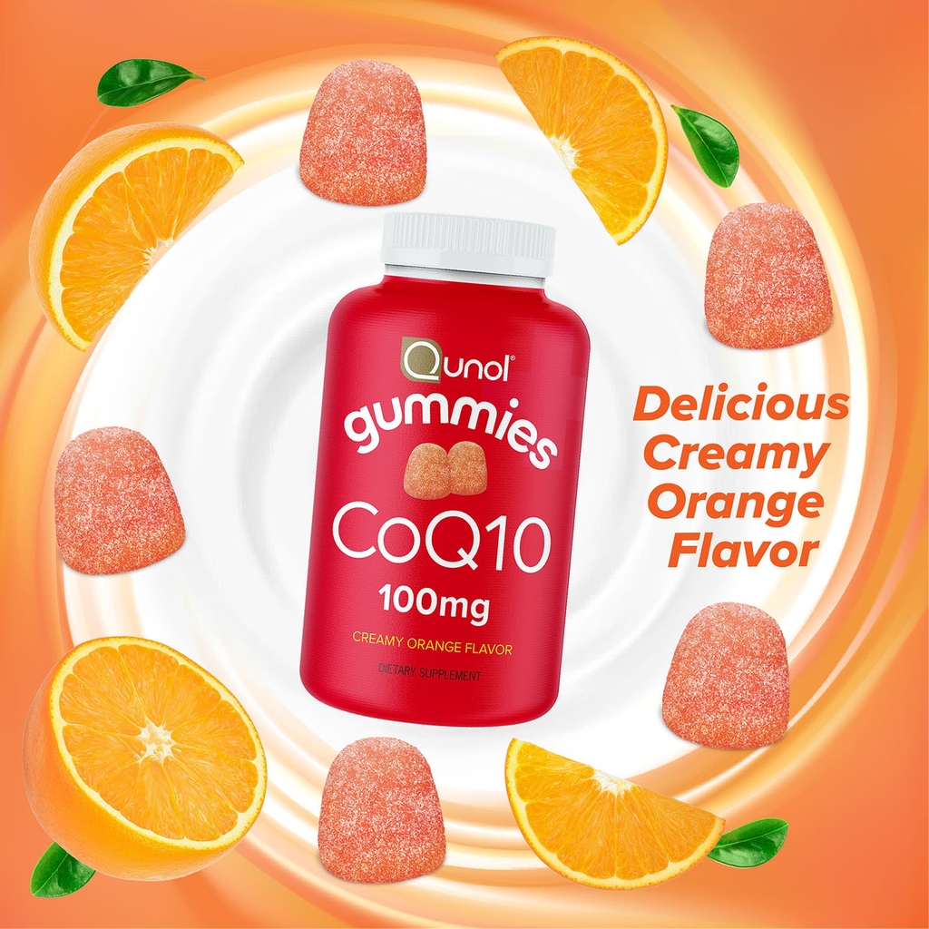Qunol CoQ10 Gummies 100 mg - Kẹo dẻo hỗ trợ tim mạch có chứa công thức Ubiquinol 100mg hòa tan trong nước và chất béo được cấp bằng sáng chế cho khả năng hấp thụ vượt trội. Hỗ trợ sức khỏe tim mạch và mạch máu và thúc đẩy mức huyết áp khỏe mạnh, chất chống oxy hóa hoàn toàn tự nhiên mạnh mẽ.(C)