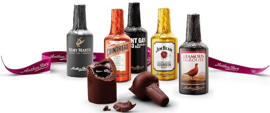 Nếu bạn đang khao khát mọi thứ, những hộp quà của Anthon Berg là định nghĩa của sự hào phóng. Mỗi hộp đều chứa đầy cảm giác hương vị cao cấp dưới dạng sô cô la đen chứa đầy rượu này có rượu mạnh đích thực ở trung tâm chất lỏng của chúng. Sô cô la hình chai có nhân lỏng và không có vỏ đường bên trong mang lại hương vị vượt trội. Loại sản phẩm này được tạo thành từ 8 nhãn hiệu rượu mùi nguyên bản nổi tiếng như The Famous Grouse, Cointreau, Malibu, Southern Comfort, Remy Martin, Sobieski, Drambuie và Matusalem.