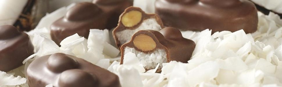 Si-rô ngô, đường, dừa, hạnh nhân, dầu thực vật (dầu cọ, dầu hạt mỡ, dầu hướng dương, dầu hạt cọ và / hoặc dầu cây rum), sô cô la, sữa tách béo, chứa 2% hoặc ít hơn: lactose (sữa), ca cao , whey (sữa), muối, lecithin (đậu nành), chất béo sữa, pgpr, bơ ca cao, protein sữa thủy phân, natri metabisulfite (để duy trì độ tươi), vanillin (hương nhân tạo).