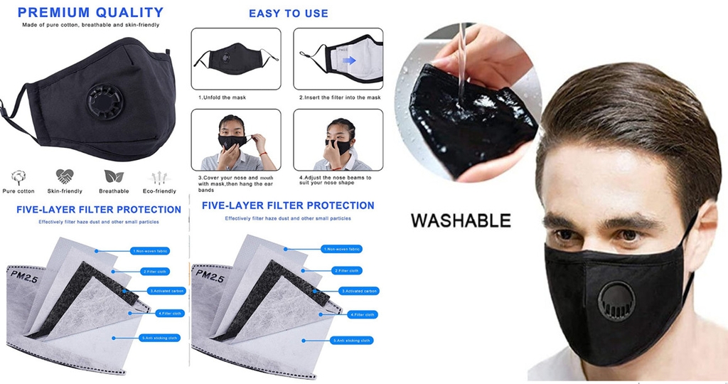 Tên sản phẩm: GREHOME 3 Pack PM2.5 Dust Mask Reusable Breathing Valve with 9 Pcs Filter, Black