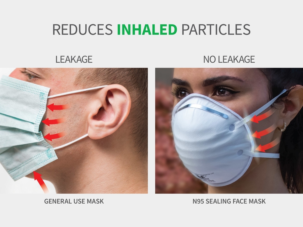 Khẩu trang hạt N95 mang lại hiệu quả vượt trội so với Mặt nạ sử dụng chung và vượt trội hơn nhiều so với khăn che mặt bằng vải. Được thiết kế để bịt kín mặt với mặt nạ, mặt nạ phòng độc N95 giảm rò rỉ khí hít vào và thở ra. Mặt nạ phòng độc FLTR N95 được chứng minh có khả năng lọc ≥95% các hạt trong không khí đến 0,3 micron.