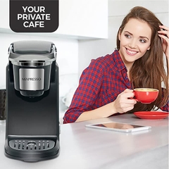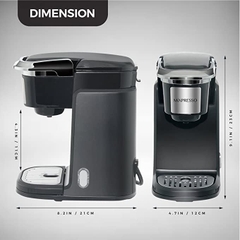 Nó chỉ cần một nút để pha cà phê nguyên chất thơm ngon (chờ dưới 1 phút). Nó là hoàn hảo cho một khẩu phần duy nhất, cho dù ở nhà hay văn phòng. Máy pha cà phê của chúng tôi hoàn hảo cho cử nhân, những người sống riêng hoặc thậm chí là gia đình có lịch trình thức dậy thất thường, máy pha cà phê này tương thích 100% với bất kỳ loại cốc đơn nào bao gồm K-Cups. Nó đòi hỏi rất ít không gian và dễ dàng lưu trữ.