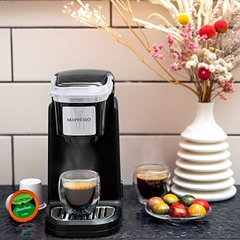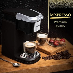 Mixpresso Single Cup Coffee Maker - Máy pha cà phê cao cấp của chúng tôi có tính năng pha nhanh với công nghệ lập trình tiên tiến, để bạn có thể bắt đầu pha cà phê (hoặc trà) nóng yêu thích của mình ngay lập tức! Không còn lãng phí thời gian, công sức và tiền bạc của bạn. Vừa được thưởng thức một tách cà phê tươi, thơm, ngon ngay tại nhà. Phải là một phần của thiết bị nhà bếp của bạn!