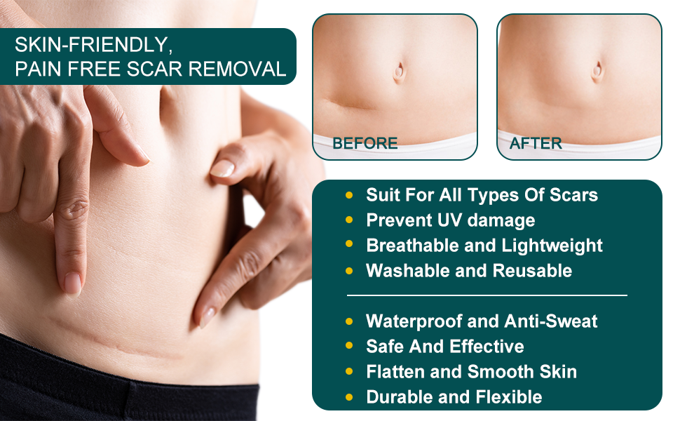 - Làm mềm vết sẹo cũ và mới: Băng dán sẹo silicon dài của chúng tôi rất lý tưởng cho nhiều loại sẹo, bao gồm sẹo phẫu thuật, sẹo sinh mổ và sẹo mụn. Chỉ cần đặt lên vết sẹo cũ hoặc mới để giảm ngứa, đỏ và khó chịu. Nó cũng giúp điều trị hầu hết các loại sẹo do phì đại, sẹo sau mụn, sẹo lồi, sẹo do chấn thương & bỏng, và vết rạn da.