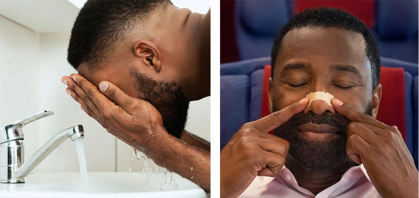 Dải dính sẽ không dính đúng cách vào da ướt, nhờn hoặc ẩm, vì vậy hãy rửa và lau khô mũi trước khi dán. Sau đó, khi bạn muốn gỡ miếng dán ra, hãy rửa mặt bằng nước ấm hoặc khi đang tắm, cẩn thận luôn tháo dải một cách nhẹ nhàng.